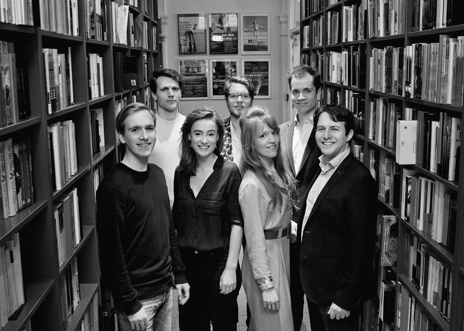 De auteurs van Blikopener. Vlnr: Niek Bollemeijer, Bram van Vulpen, Ernée Derckx, Philip Stein, Laura Burgers, Ramon Creyghton, Hugo van Dam.